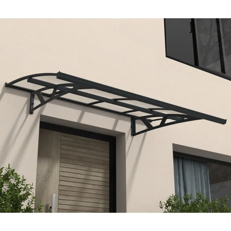 Il tettuccio per porta Amsterdam è elegante, funzionale e resistente, progettato per tenere ingresso, porta o facciata asciutta e protetta dalle intemperie. Copri ingresso, barbecue e bicicletta, riducendo la quantità di luce del sole diretta. I bracci di supporto in acciaio galvanizzato verniciato a polvere, la grondaia frontale in alluminio e le finiture posteriori, insieme ai pannelli resistenti ai raggi UV al 100% solidi ad alto impatto rendono Amsterdam una pensilina perfetta. Il design robusto e moderno si abbina a ogni arredamento e ambiente. Aggiungi valore alla tua casa o proprietà con un’estensione ecologica fai da te, realizzata per poter essere usata negli anni.