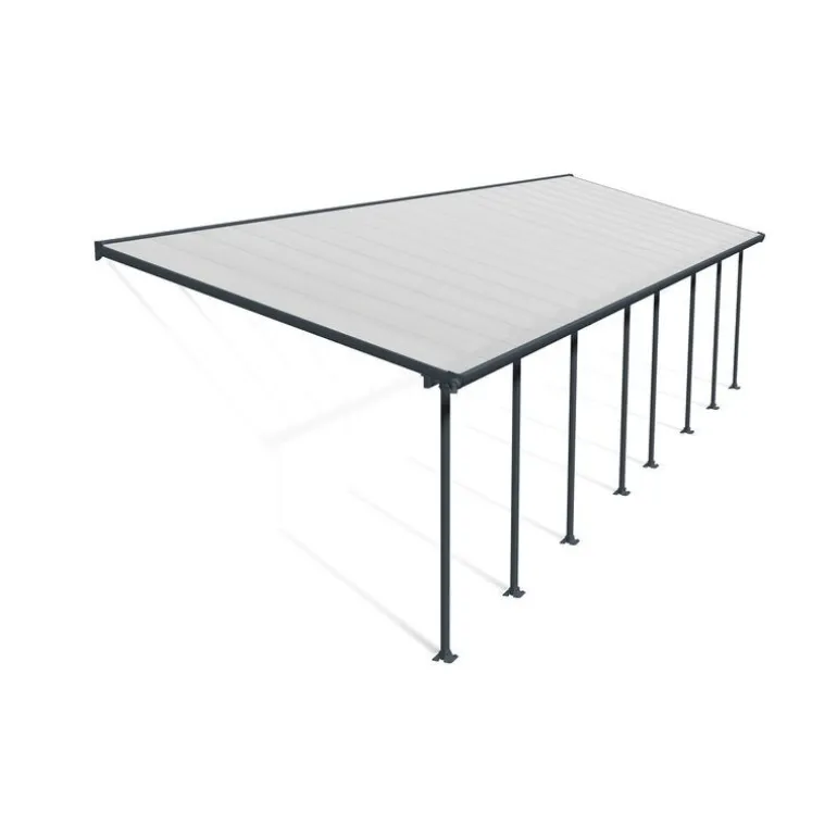Scopri la Pergola Addossata Canopia Feria in Alluminio 3X10.4 m Grigio: elegante, robusta e priva di ruggine. Facile da montare grazie al sistema Click N’ Lock, offre una copertura estetica e senza manutenzione per il tuo patio. I pannelli in policarbonato resistono agli urti e proteggono dal 100% dei raggi UV. Goditi la vita all’aperto senza preoccuparti del tempo. Pali regolabili e sistema di grondaie integrato. Non richiede manutenzione.