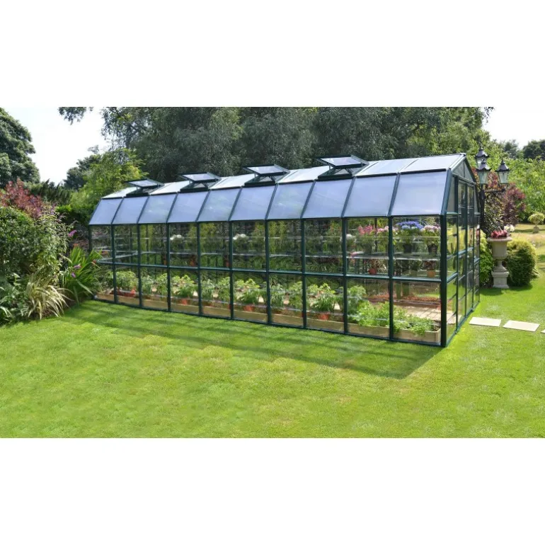 La serra Palram – Canopia Grand Gardener è caratterizzata da un’elegante forma a fienile e da un design a finestra che rende la vostra serra splendida ancora prima che abbiate piantato qualcosa. L’enfasi sulla sicurezza è evidente dal telaio resistente ai pannelli in policarbonato estremamente sicuri. Il robusto telaio in resina estrusa, resistente alle intemperie e protetto dai raggi UV, con i suoi profili del tetto in alluminio, migliora sia l’isolamento totale che la durata. Le pareti laterali in policarbonato cristallino offrono una vista chiara, mentre i pannelli del tetto a doppia parete diffondono oltre l’80% della luce solare per una luce morbida e uniforme. L’attenzione ai dettagli prosegue attraverso il design del tetto che fornisce ampio spazio per la testa e più spazio al giardino, fino alle doppie porte che rendono facile entrare e uscire, anche con grandi vassoi di piante. C’è anche un’eccellente ventilazione grazie alla presa d’aria sul tetto, che fornisce un flusso d’aria e trattiene il calore quando le porte sono chiuse. Il montaggio con perno e serratura rende la serra Palram-CanopiaGrand Gardener perfetta per l’appassionato di coltivazione che vuole qualcosa di facile e bello