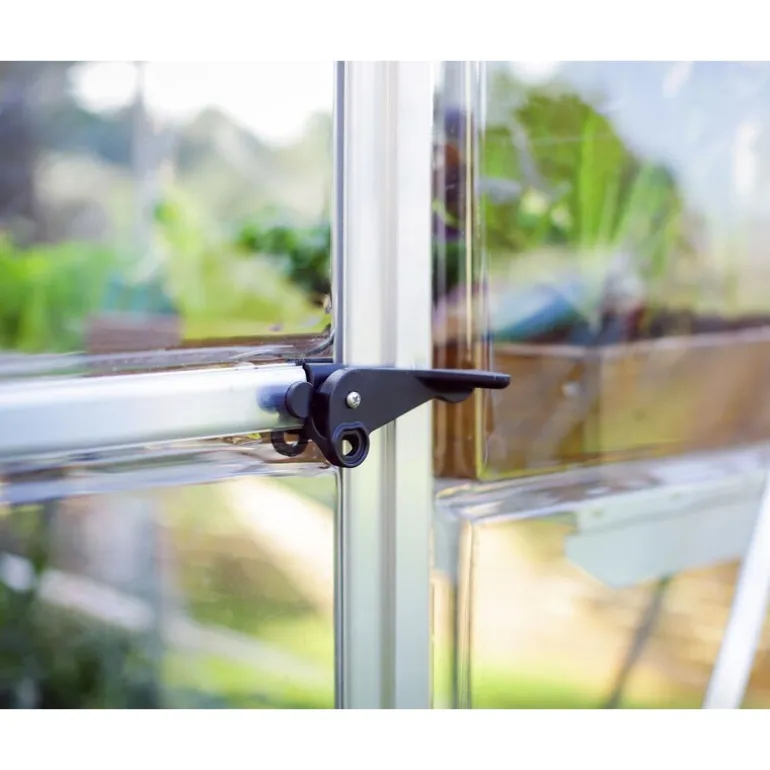 - Include finestre per ventilazione, base perimetrale in acciaio galvanizzato per maggiore stabilità e allineamento, reggi porta magnetico per tenere la serra aperta