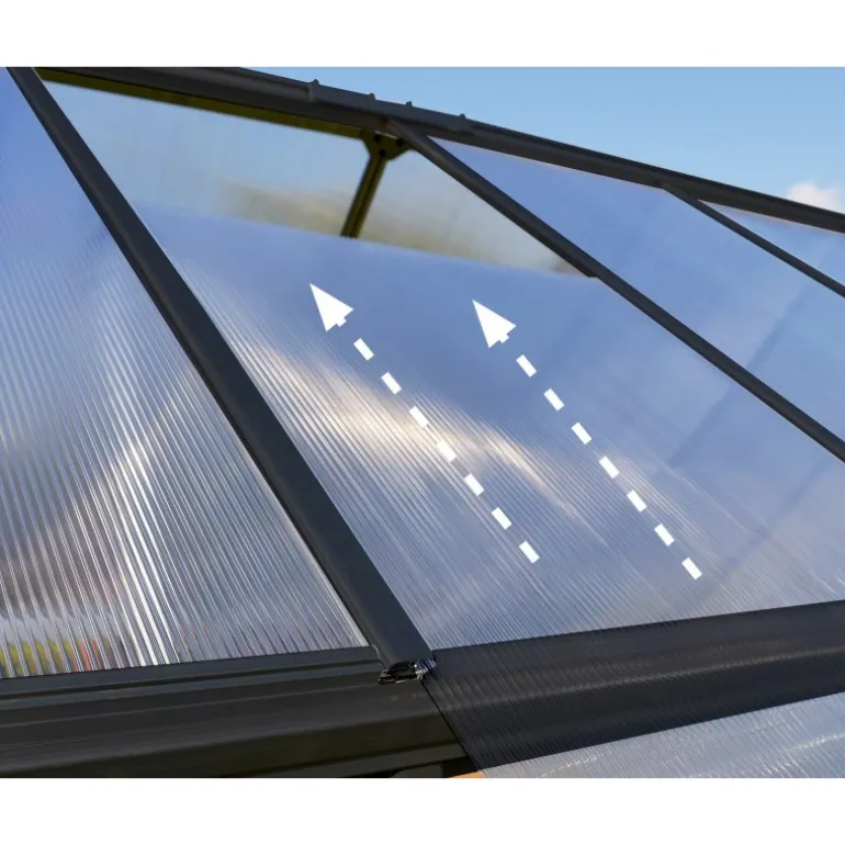 Hybrid è un modello di serra ingegnoso per appassionati di giardinaggio che offre 2 tipi di pannelli in policarbonato praticamente indistruttibile insieme a telaio in alluminio inossidabile resistente, verniciato a polvere. Questo prodotto soddisfa tutte le esigenze di giardinaggio. I pannelli sul tetto doppi bloccano il 100% dei raggi UV dannosi e diffondo la luce diretta del sole. I pannelli sui lati trasparenti fanno passare il 90% della luce del sole. La serra Hybrid è robusta, esteticamente bella e non richiede manutenzione per anni di divertimento in giardino.