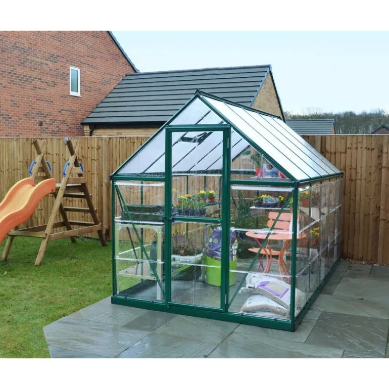 Hybrid è un modello di serra ingegnoso per appassionati di giardinaggio che offre 2 tipi di pannelli in policarbonato praticamente indistruttibile insieme a telaio in alluminio inossidabile resistente, verniciato a polvere. Questo prodotto soddisfa tutte le esigenze di giardinaggio. I pannelli sul tetto doppi bloccano il 100% dei raggi UV dannosi e diffondo la luce diretta del sole. I pannelli sui lati trasparenti fanno passare il 90% della luce del sole. La serra Hybrid è robusta, esteticamente bella e non richiede manutenzione per anni di divertimento in giardino.