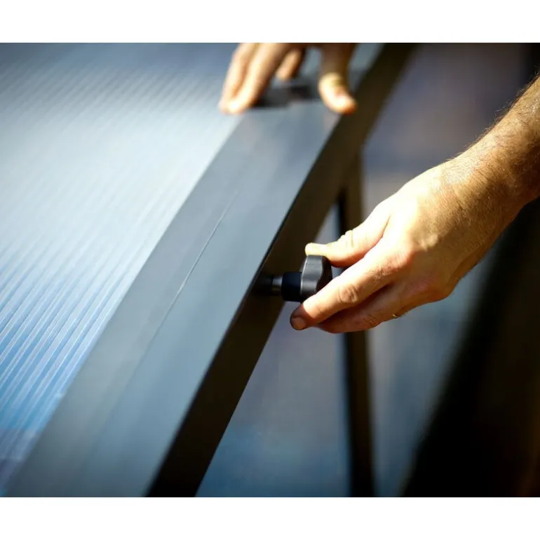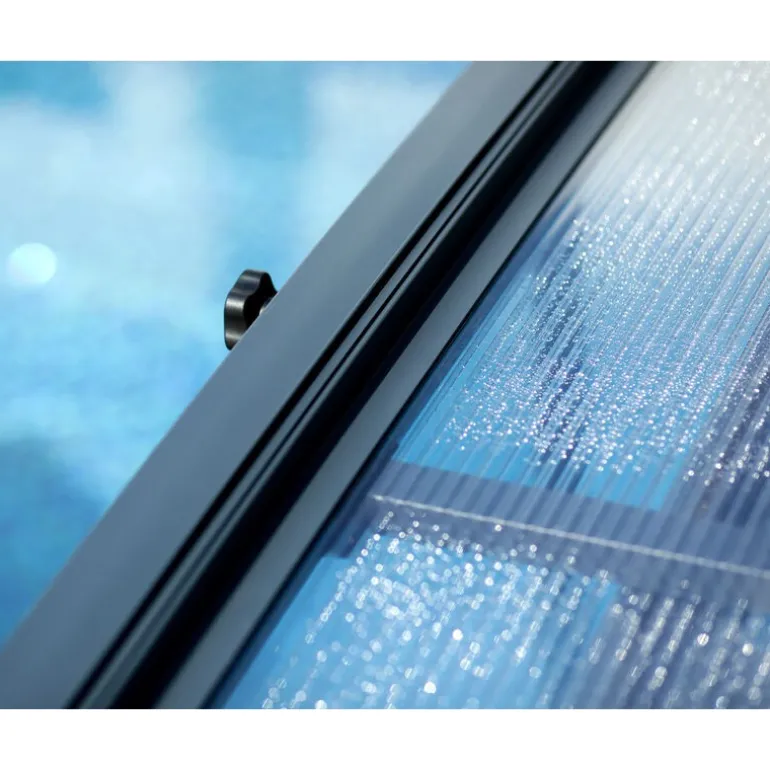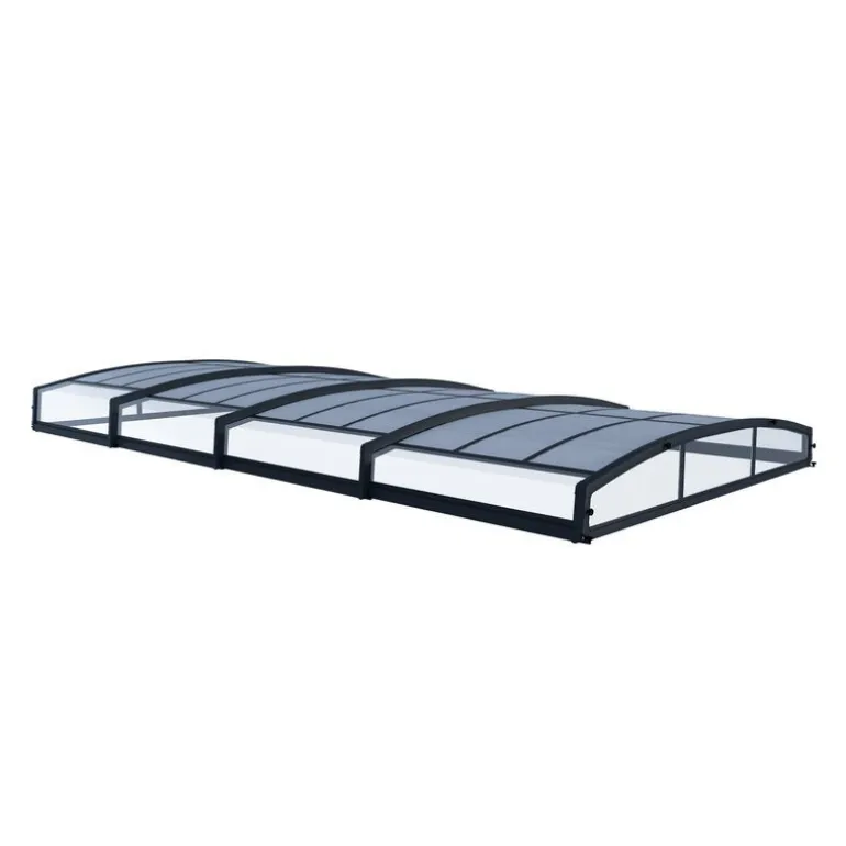 - I pannelli in policarbonato resistenti agli urti e protetti dai raggi UV proteggono voi e la vostra piscina.