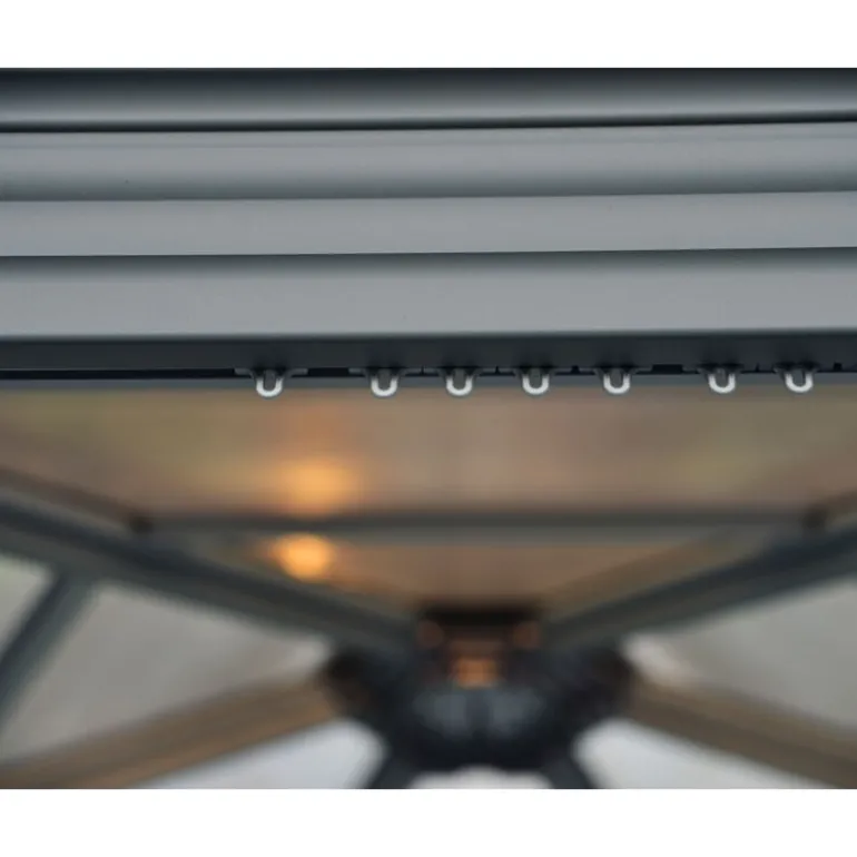 - Gazebo equipaggiato con rotaie e kit di ganci per tende, rete antizanzare, vasi ecc. (venduti separatamente)