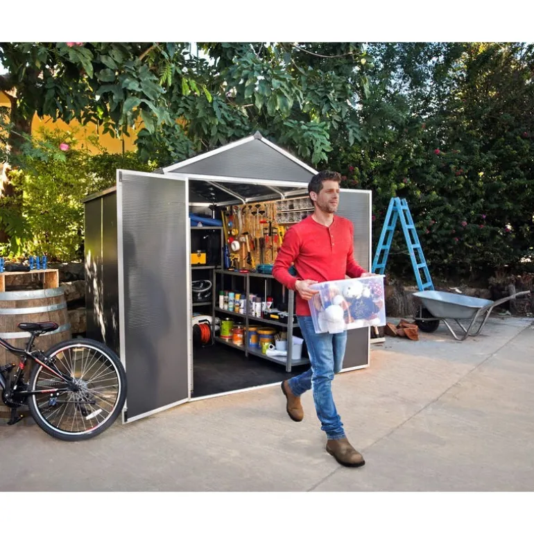 Scopri la Casetta da Giardino Canopia Rubicon, realizzata in Policarbonato Ultra Resistente. Con dimensioni di 229x185x217 cm, questa casetta grigio scuro offre un ripostiglio robusto e durevole, ideale per organizzare e proteggere i tuoi spazi esterni. Resistente a condizioni climatiche estreme, umidità e termiti, non richiede manutenzione e si illumina con la luce naturale del sole. Facile da montare grazie al sistema Easy-Slide, è dotata di pavimento antiscivolo.