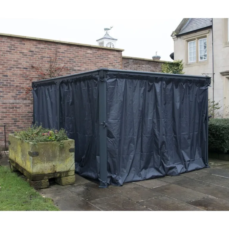 - Include elementi di fissaggio sui montanti d’angolo per tenere le tende aperte