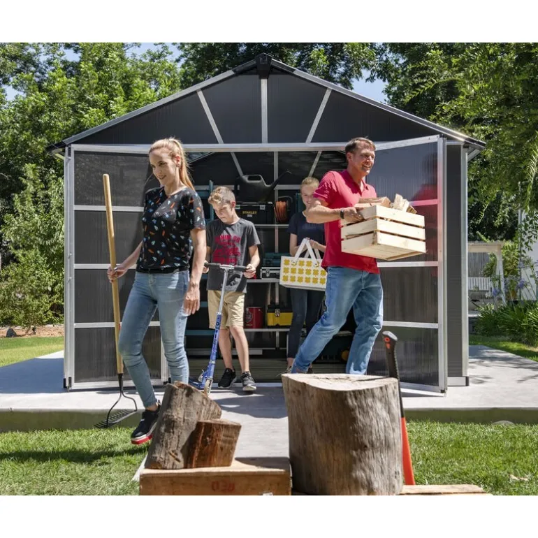 Scopri la Casetta da Giardino Canopia Yukon in Policarbonato, la soluzione definitiva per organizzare il tuo spazio esterno. Resistente a condizioni meteo avverse, impatti e temperature estreme, offre un ambiente sicuro per riporre attrezzi e accessori da giardinaggio. Il design unico del tetto permette il passaggio della luce naturale, mantenendo l’opacità. Include pavimento in composito di legno e plastica, resistente e impermeabile. Facile da installare, non necessita di manutenzione.