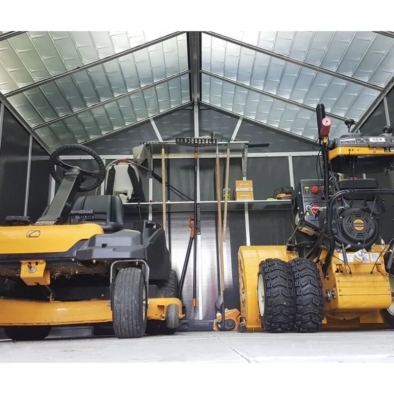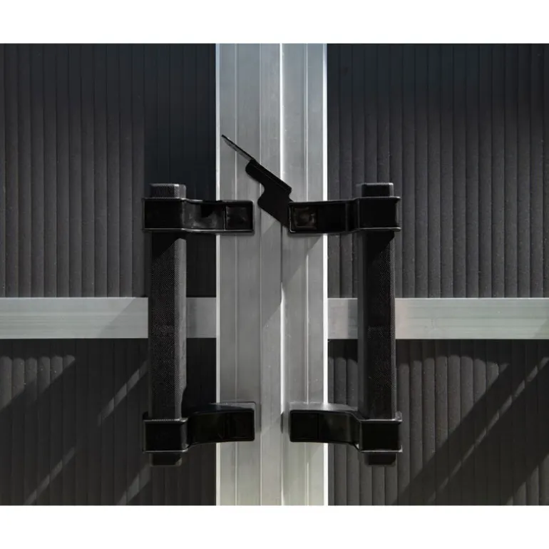 - Porta doppia ampia da 147,5 cm con soglia bassa – ideale per riporre piccoli trattori, tagliaerba, attrezzi personali e accessori da giardinaggio