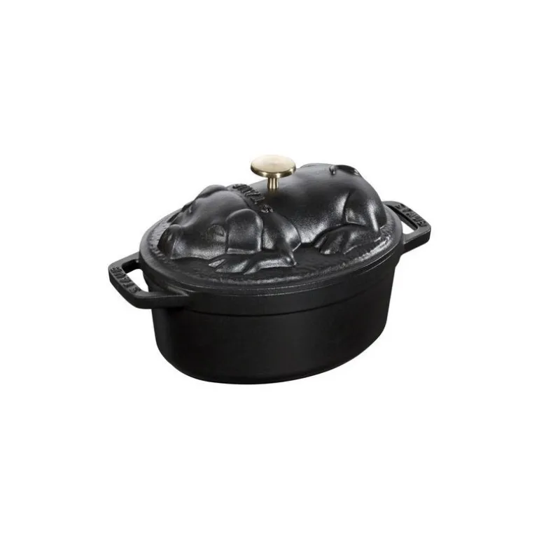 Cocotte Ovale Maialino 17 cm Nera in Ghisa