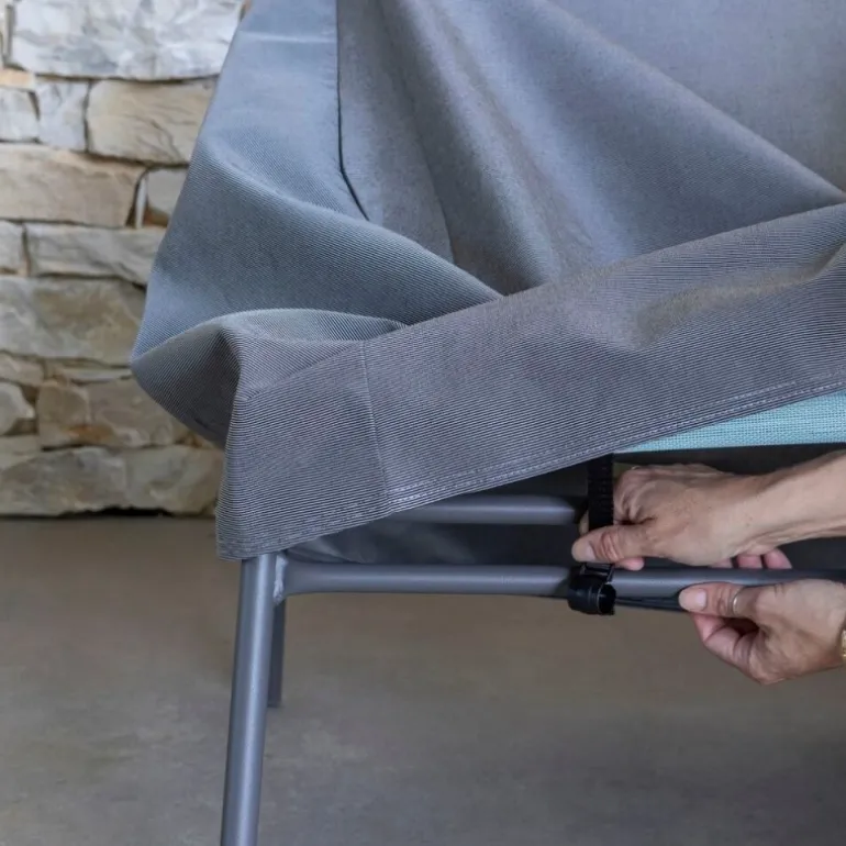 Progettata appositamente per la gamma VENCE, questa copertura di protezione protegge efficacemente il vostro arredo, prolungandone la durata nel tempo. Facile da installare, garantisce una protezione ottimale in ogni stagione. Compatibile con tutte le panche VENCE/HORIZON a 2 posti.