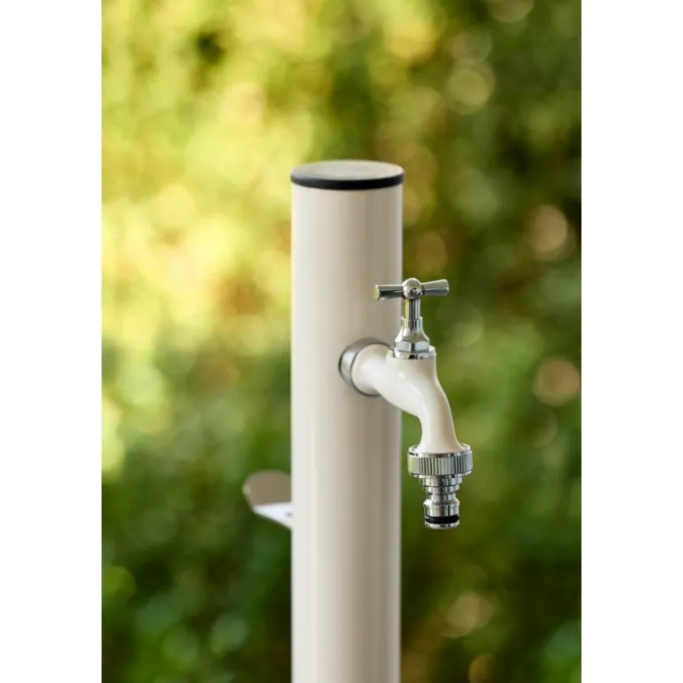Colonnina idrica in acciaio verniciato tonda da interrare, completa di rubinetto in tinta e sella portatubo in acciaio inox. Accessori di fissaggio esclusi. Disponibile in 5 colori.