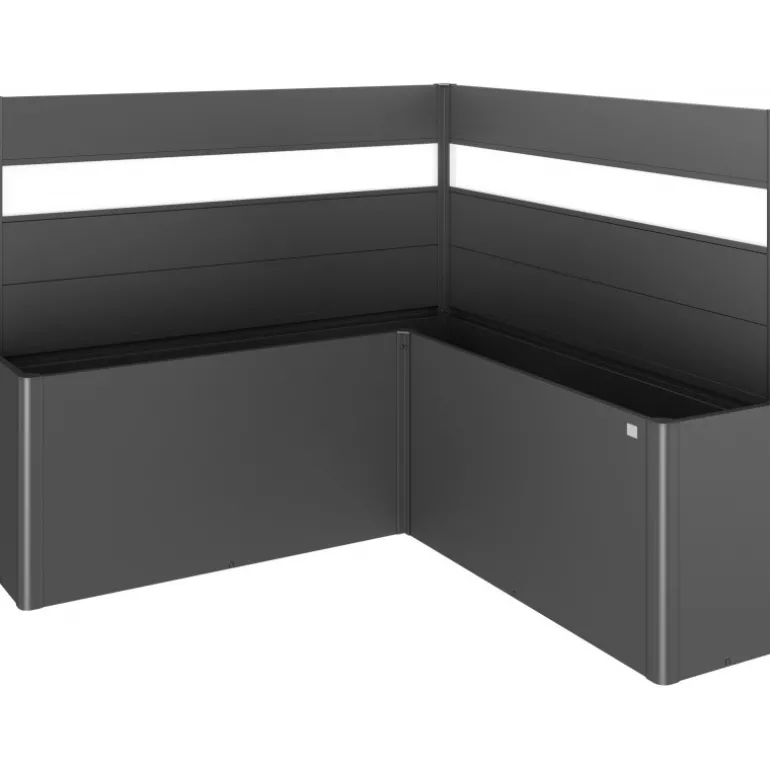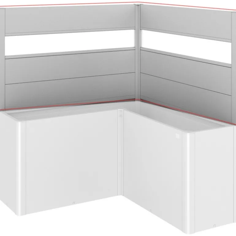 Frangivista con elemento vetro in acrilico per fioriera Belvedere. Il frangivista crea una delimitazione decorativa e non solo si fa apprezzare per l’estetica, ma serve anche come protezione dal vento. Non può essere combinato con il sopralzo o la protezione contro le lumache.