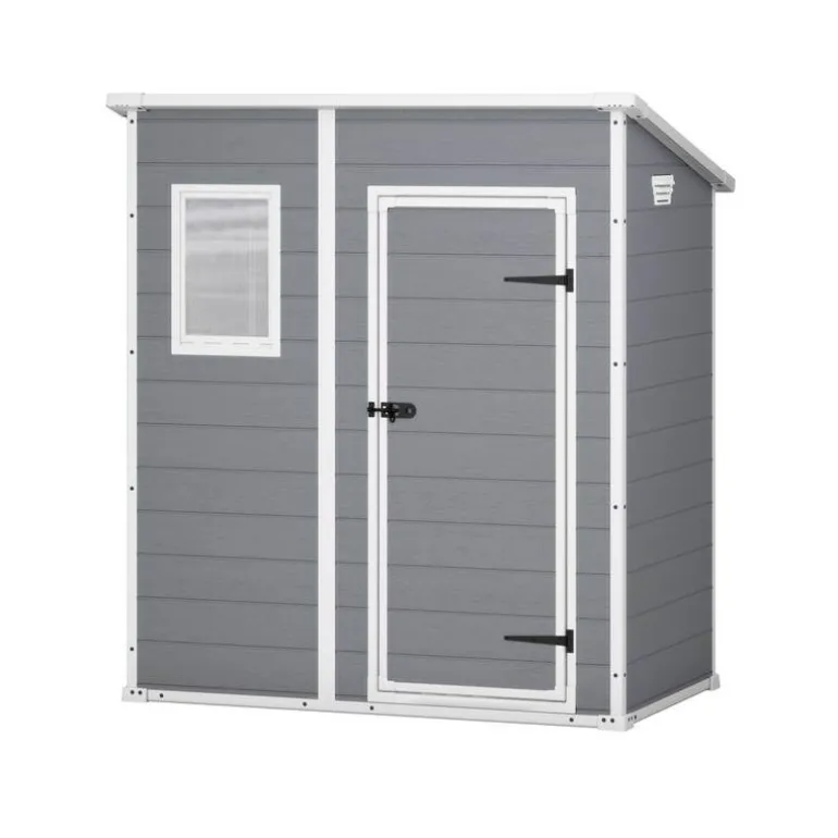 Casetta in polipropilene rinforzato, robusta e ideale per riporre attrezzi e per qualsiasi esigenza in giardino. Ottimo isolamento dalle condizioni esterne. Assemblaggio semplice ed intuitivo. Dotata di griglia di ventilazione e di una finestra fissa per massimizzare la luce naturale.