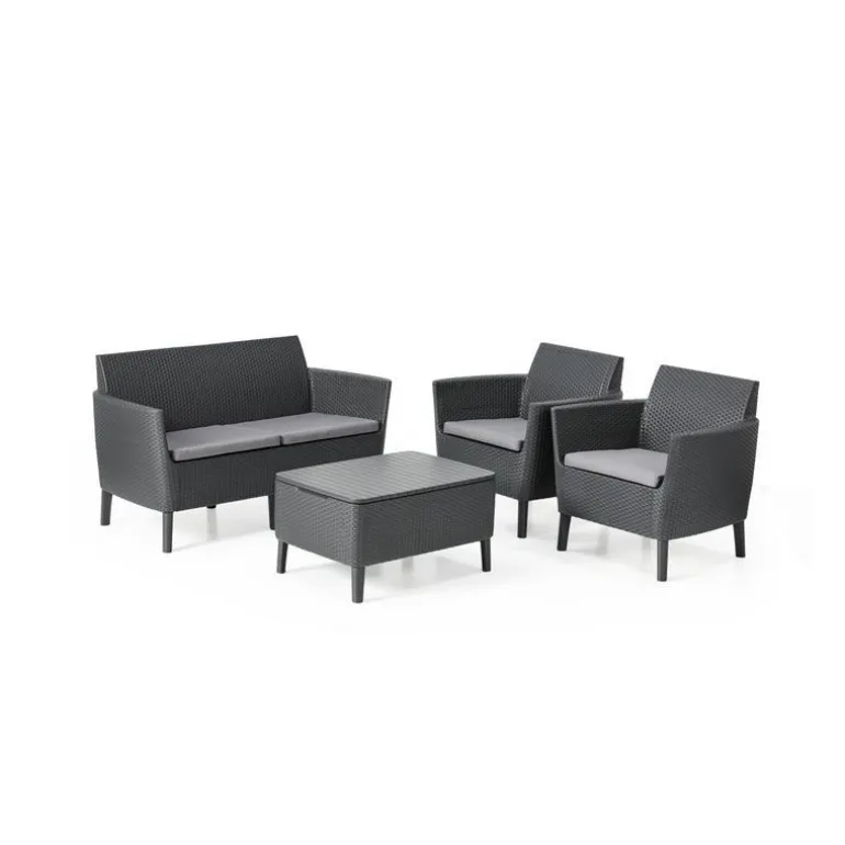 Set composto da: 1 Divano a 2 posti, 2 Poltrone ed un Tavolino contenitore.