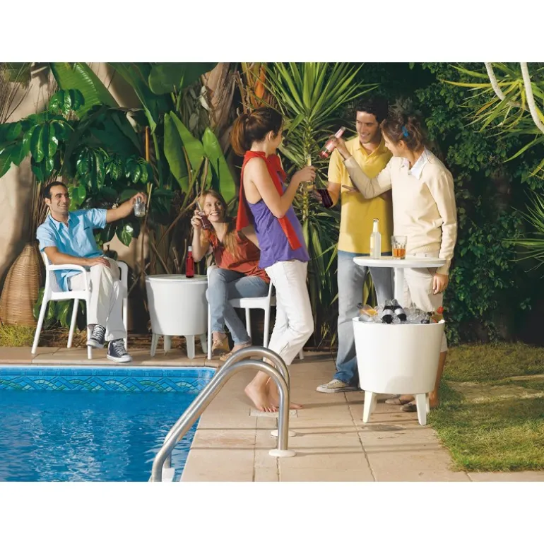 Il tavolino in resina Cool Bar ha la doppia funzione di porta bevande e tavolino. Perfetto per party o barbecue.