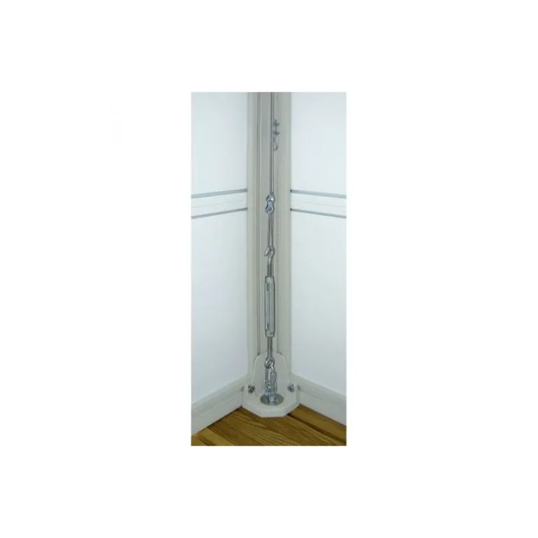 Sistema di ancoraggio al suolo in acciaio composto da cavo, tensionatori e moschettoni.