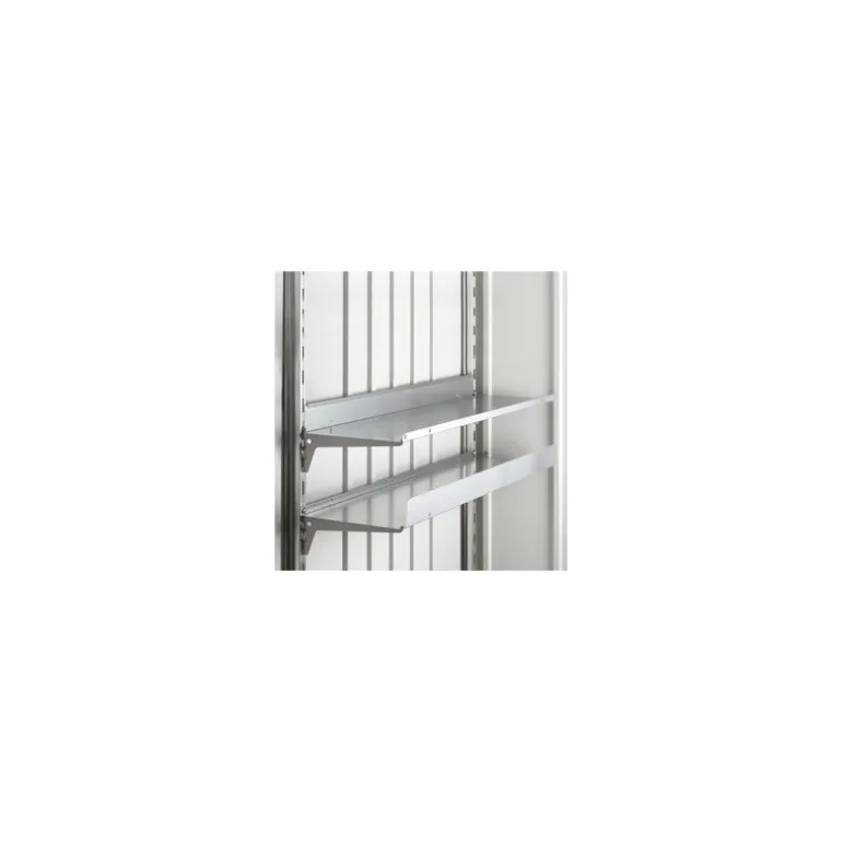Zincati a caldo , facilmente montabili in un secondo momento; carico massimo per ogni ripiano: 15 kg. Il set consisite di 2 ripiani, 4 staffe e materiale di fissaggio (occorre ordinare i montanti separatamente).