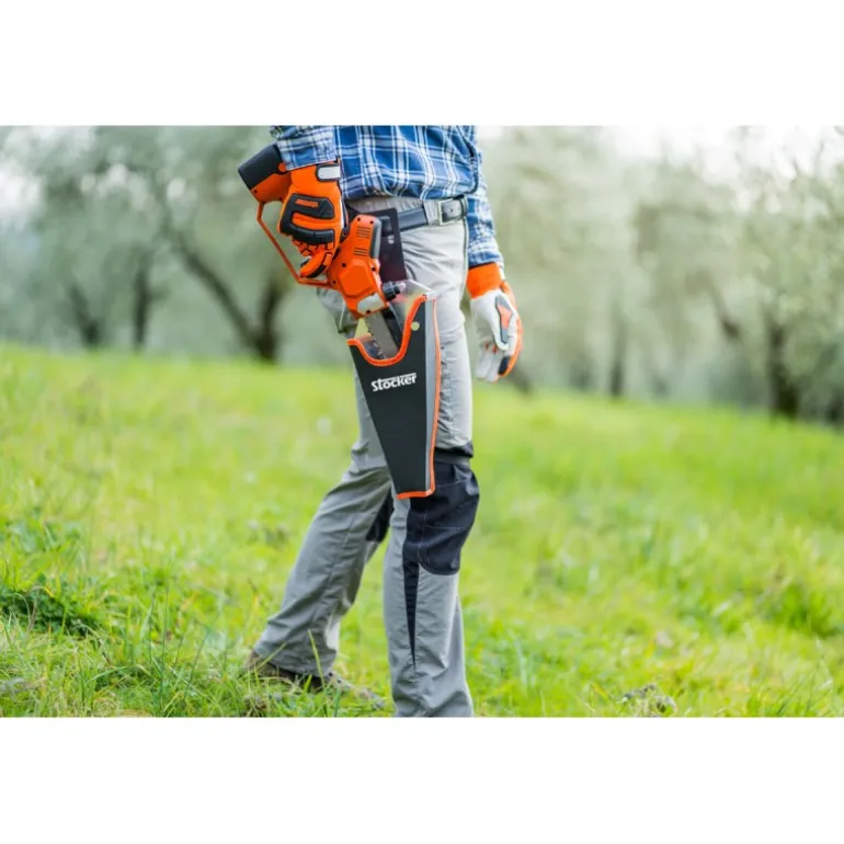 Il fodero per motoseghe elettriche è un pratico fodero in robusto nylon, l’inserto interno in metallo consente un trasporto sicuro della motosega. La fascia regolabile per fissaggio alla coscia e il passante per la cintura assicurano una stabilità ottimale. Una semplice quanto efficace cinghia con bottone consente di assicurare facilmente la motosega al fodero, in modo da poter effettuare tutti i movimenti, anche i più articolati.