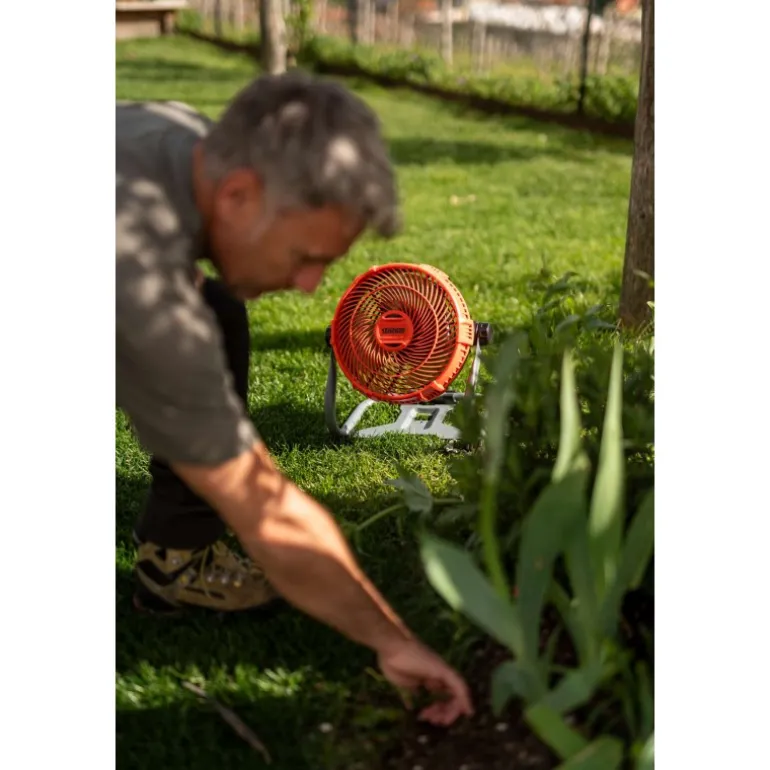 Il ventilatore a batteria 21 V è il tuo compagno ideale durante i lavori nelle calde giornate. In giardino, in officina, negozio o garage: grazie alla sua portabilità e al peso di soli 2.190 gr potrà essere al tuo fianco in qualsiasi situazione.