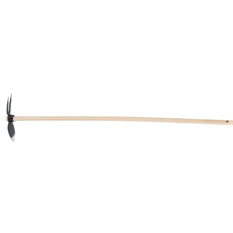 Praticissima zappa bidente a forma di cuore con manico per dissodare la superficie del terreno. – Lama in acciaio forgiato – Con zappa a forma di cuore e bidente – Peso lama: 500 g – Con manico in legno