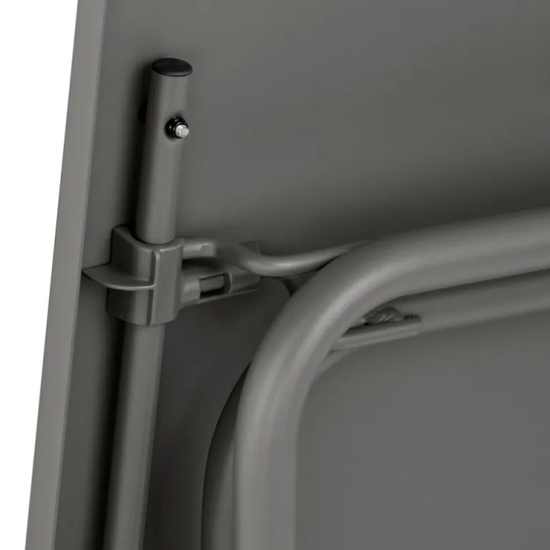 – Struttura: base con tubo in acciaio A.L.E. (Alto limite elastico) Ø 25 mm. Vernice 100% poliestere, elevata resistenza ai raggi UV. Sistema di progettazione che consente di ottenere il massimo dello spazio all’altezza delle gambe.