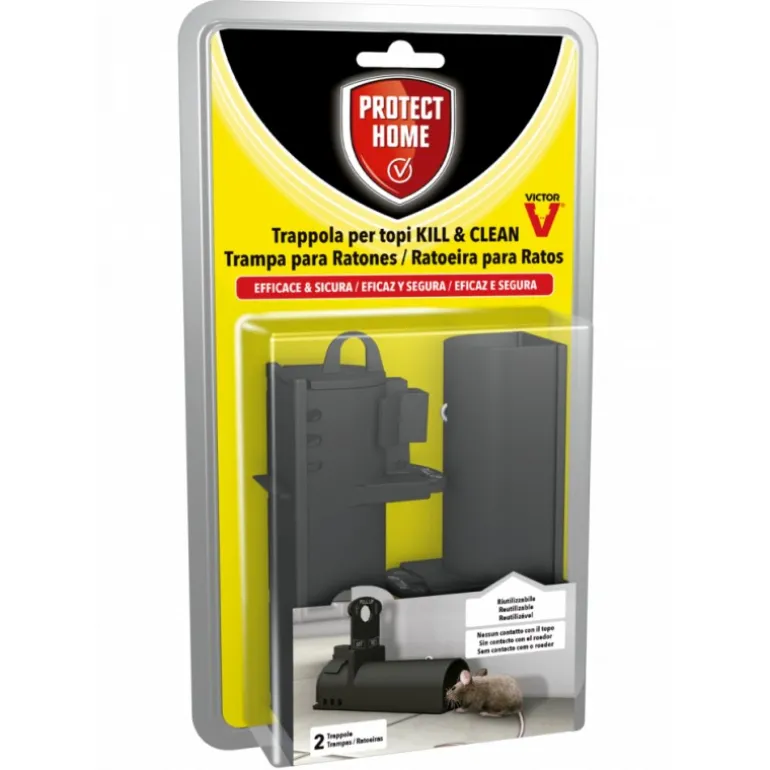 La trappola meccanica Kill&Clean offre una precisa e igienica possibilità di combattere i topi in casa (cantine, lavanderia, soffitte) e anche all’esterno. Per favorire la cattura dei topi, posizionare la trappola lungo i muri nei luoghi frequentati dai roditori.