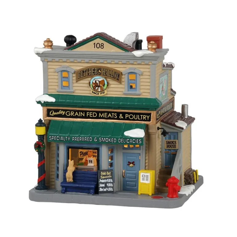 Lemax Butcher’S Hollow Cod. 15767 misura cm 16 x 13.4 x 17.3h ed è composto principalmente in Porcellana.