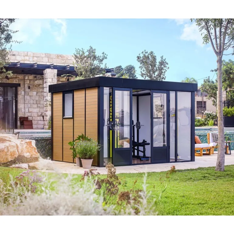 Create uno spazio per concentrarvi e lavorare da casa con stile con il kit Garden Office di Palram – Canopia Copenhagen.Il Garden Studio offre la comodità di un ufficio domestico o di uno spazio direttamente in giardino, senza le distrazioni del lavoro da casa.Il kit Backyard Office è dotato di pareti a triplo isolamento per un comfort che dura tutto l’anno. Le robuste pareti in WPC della struttura hanno spazio sufficiente tra loro per installare qualsiasi cablaggio o impianto idraulico nascosto per l’elettricità, internet o l’acqua, e sono abbastanza robuste da sostenere un condizionatore d’aria. La struttura può essere utilizzata come capanno da ufficio all’aperto, studio di yoga, studio d’arte, capanno per lei, grotta dell’uomo o semplicemente come spazio in cui rifugiarsi.Le linee pulite del moderno design scandinavo 3 X 3,7 mostrano funzionalità senza sacrificare la bellezza, compresa una grondaia interna nascosta per raccogliere e deviare l’acqua piovana. L’elegante telaio nero e i pannelli verniciabili mantengono la modernità, mentre la parte anteriore dell’ufficio esterno è completamente open space, con ampie porte doppie che si possono aprire per sfruttare al meglio l’esperienza indoor-outdoor.Scegliete dove posizionare le due finestre, il pannello del tetto apribile e il parasole incluso per ottimizzare la vista e la luce naturale. Appendete le mensole dove vi servono, decorate il vostro spazio con quadri e installate gli schermi di cui avete bisogno, il tutto da.