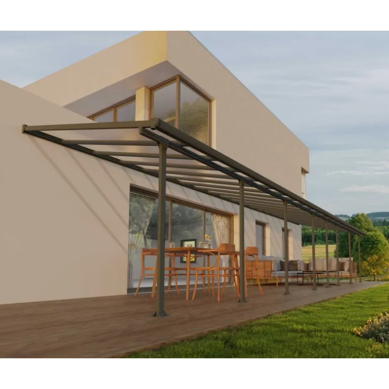 Scopri la Pergola Addossata Canopia Feria in Alluminio 3X12.2 m Grigio, la soluzione ideale per godere dell’aria aperta in ogni stagione. Facile da montare, resistente e senza manutenzione, offre una copertura perfetta per patio, carport, solarium o spa. I pannelli in policarbonato multistrato proteggono dal sole e dalle intemperie, garantendo una luce naturale del 25%. La struttura in alluminio è robusta e resistente alla ruggine. Goditi il tuo spazio esterno con Canopia Feria!