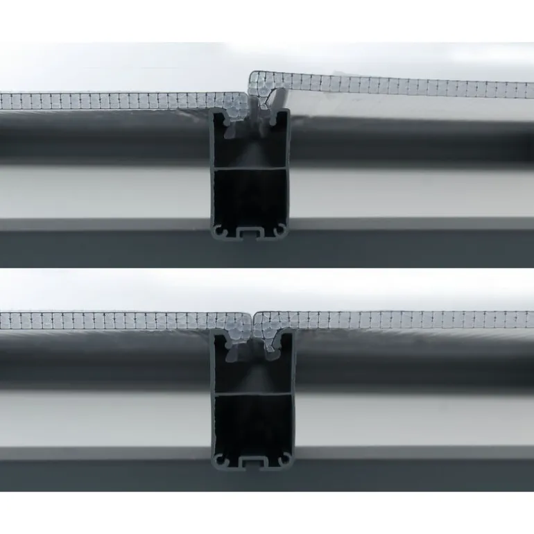 - I pannelli del tetto a nido d’ape in policarbonato, spessi 8 mm e praticamente infrangibili, sono altamente resistenti agli urti, infrangibili e offrono una trasmissione della luce del 65%.