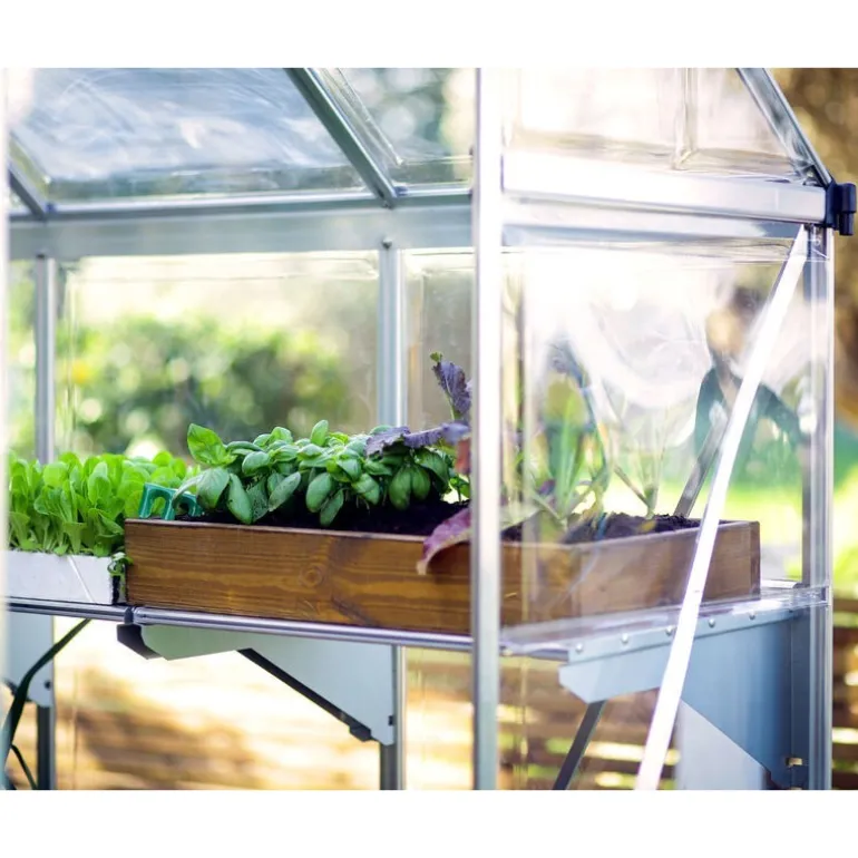 Scopri il Kit di Ripiani in Alluminio Canopia Forte: robusto, modulare e facile da installare. Ideale per ottimizzare lo spazio nella tua serra Palram – Canopia, supporta fino a 40kg e si aggancia facilmente in ogni parte. Perfetto per riporre vasi, fertilizzanti e attrezzi da giardino. Accessori di montaggio inclusi. Clicca per maggiori dettagli!