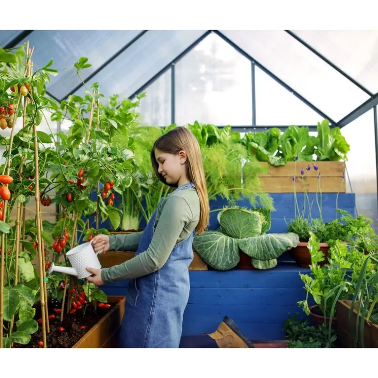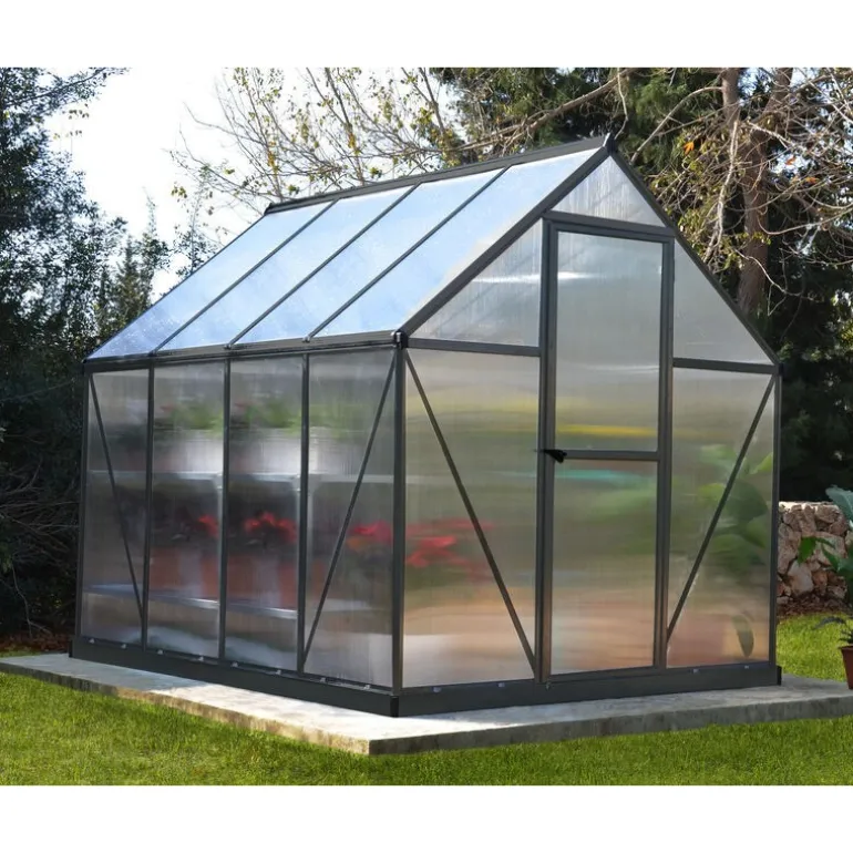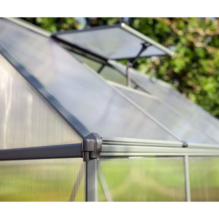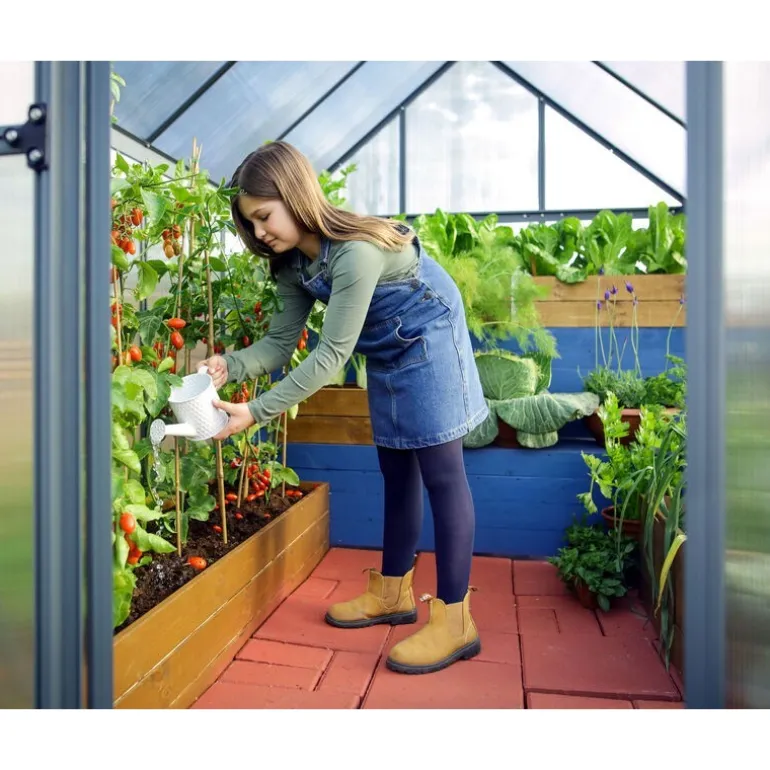 La serra Mythos è particolarmente elegante. Aiuta a tenere temperatura e luce ottimale per piante sensibili. Dotata di pannelli in policarbonato doppio praticamente indistruttibili e telaio in alluminio inossidabile verniciato a polvere. Mythos offre una porta bloccabile con magnete, ventola sul tetto e base in acciaio galvanizzato per maggiore stabilità, allineamento e altezza. La serra Mythos è raffinata e pratica, progettata per proteggere le piante dalle intemperie in modo da fare giardinaggio tutto l’anno.