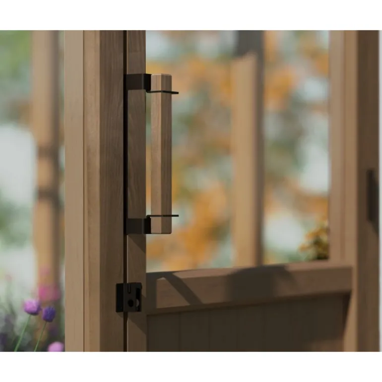 - Design accessibile: Un’ampia porta d’ingresso con serratura e una rampa a bassa soglia facilitano l’ingresso e l’uscita di piante, attrezzi e persone.