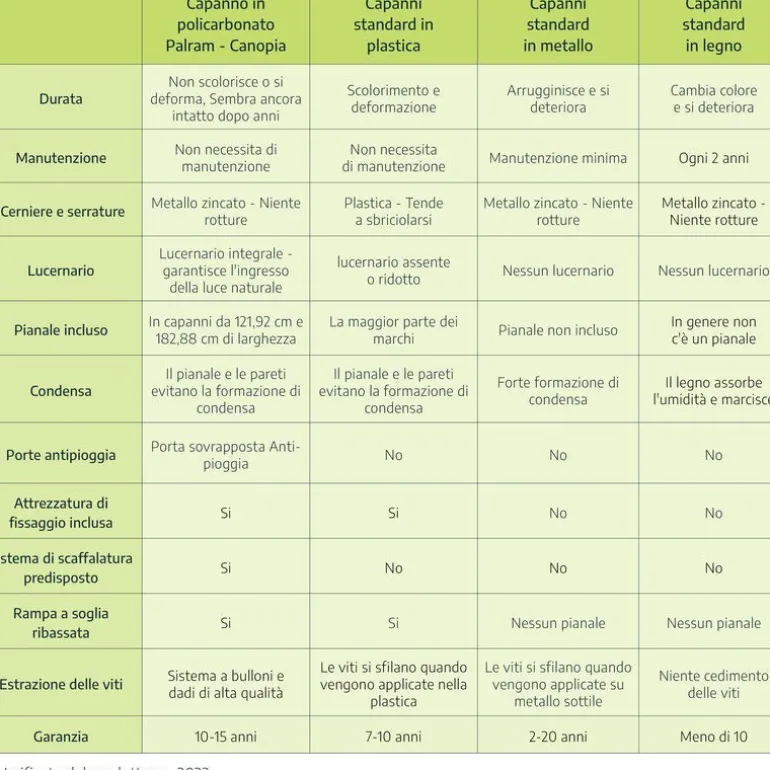 - Pannelli in policarbonato che bloccano il 100% dei raggi UV dannosi praticamente indistruttibili