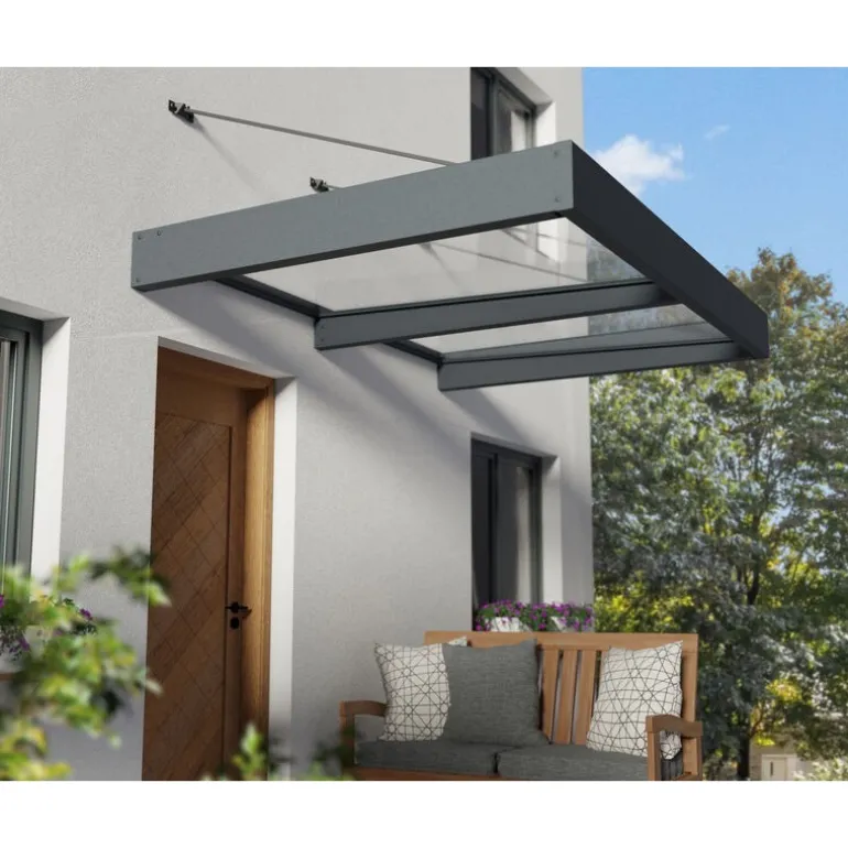 La Sophia XL è l’epitome dello stile e della funzionalità moderna: il nostro portico extra-largo e profondo è una soluzione elegante per elevare la tua casa. Realizzato con precisione, questo portico contemporaneo offre una protezione estesa che va oltre le dimensioni standard (letteralmente, con oltre 1,4 metri di profondità, è più profondo della maggior parte dei copriporta). Progettato per fare una dichiarazione, il nostro portico può essere installato senza soluzione di continuità l’uno accanto all’altro per aggiungere copertura al tuo patio posteriore, all’ingresso, alle finestre, o anche sopra il portone del garage. Le linee eleganti e il design minimalista della cornice in alluminio grigio con pannelli trasparenti creano un’aggiunta visivamente sorprendente alla tua casa, offrendo un ingresso accogliente sia per i residenti che per gli ospiti. Questo portico ultra-resistente è facile da installare ed è progettato per resistere alle condizioni meteorologiche più difficili in modo che tu, le tue cose e la tua porta siano protetti per gli anni a venire. Con il portico Sophia XL, ottieni la protezione di cui hai bisogno nel look che desideri.