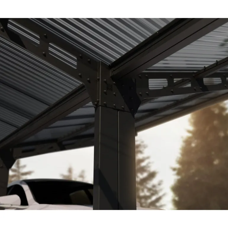 L’eleganza incontra la praticità con il Sydney Double Carport Wings. È stato progettato per soddisfare le tue esigenze di protezione all’aperto. Ti offre una bellissima struttura a ali doppie per parcheggiare due auto in spazi ridotti. Il versatile kit per carport, ideale per una stazione di ricarica auto, vanta pannelli che trasmettono la luce solare pur fornendo protezione UV e ombra abbondante, consentendo di funzionare come carport a struttura alare, copertura per patio o area lounge coperta all’aperto.Con una misura di quasi 6 metri di larghezza per 6 metri di lunghezza, questo riparo per auto doppio è progettato per resistere alle condizioni meteorologiche volatili. Il carport in policarbonato ultra resistente include un sistema integrato di grondaie, che consente il drenaggio e la raccolta dell’acqua per un sistema di irrigazione sostenibile. Proteggi il tuo veicolo dalla neve, grandine, vento e raggi UV in un carport per parcheggio moderno e versatile.Il Sydney Double Carport Wings fornisce alla tua famiglia una copertura extra grande ed elegante che è robusta, a bassa manutenzione e priva di ruggine per molti anni a venire.