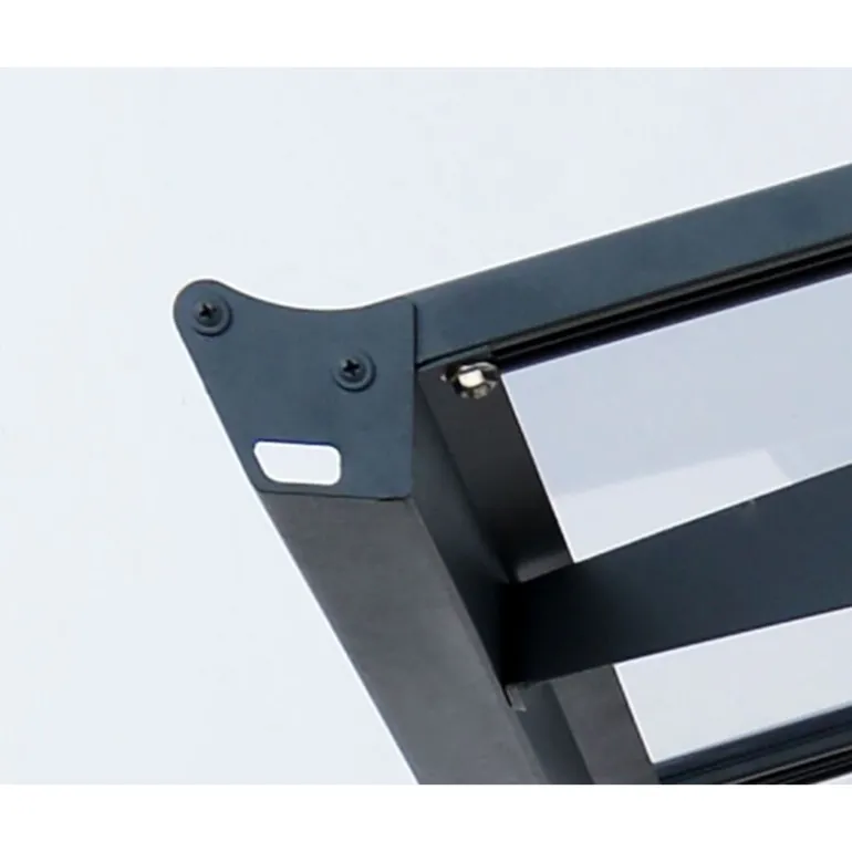 - Grondaia in alluminio frontale e guarnizione in gomma nascosta che previene fuoriuscite d’acqua e spinge la pioggia di lato