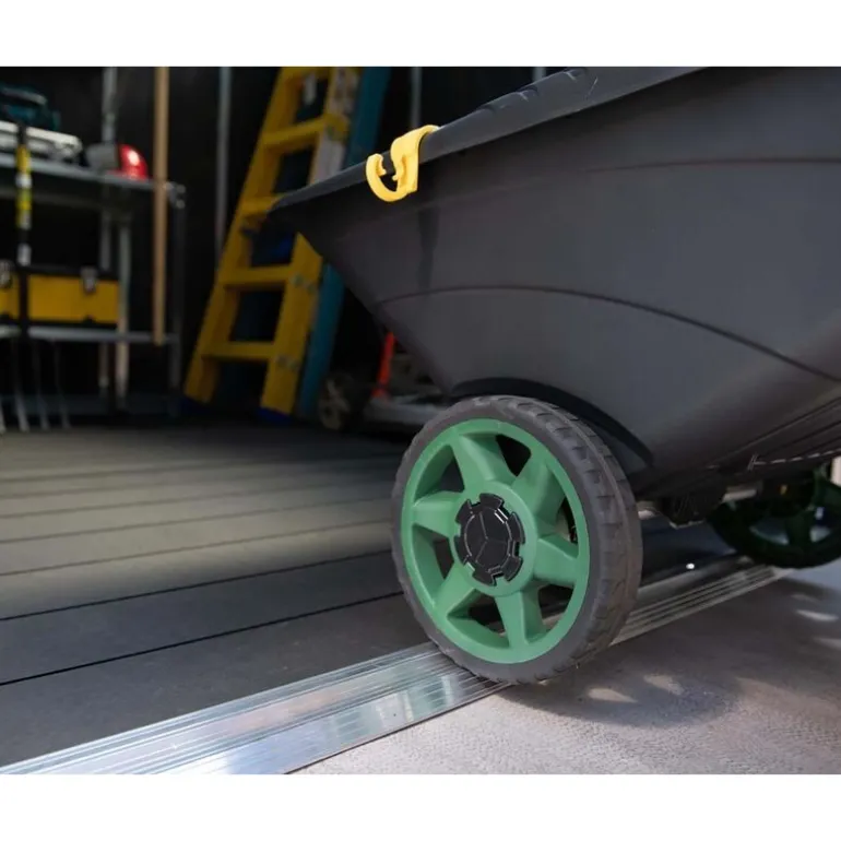 - Porta doppia ampia da 147,5 cm con soglia bassa – ideale per riporre piccoli trattori, tagliaerba, attrezzi personali e accessori da giardinaggio
