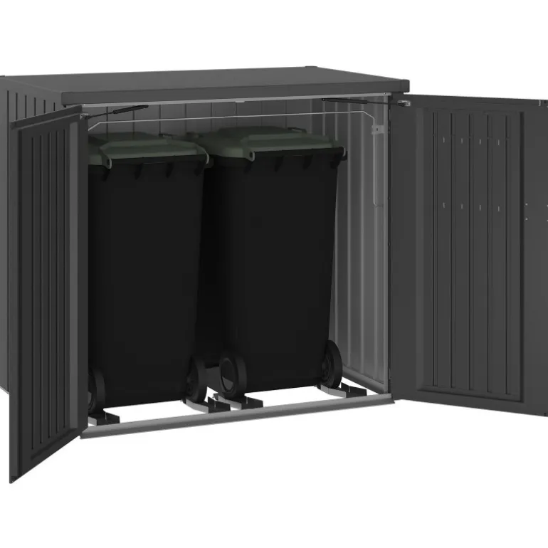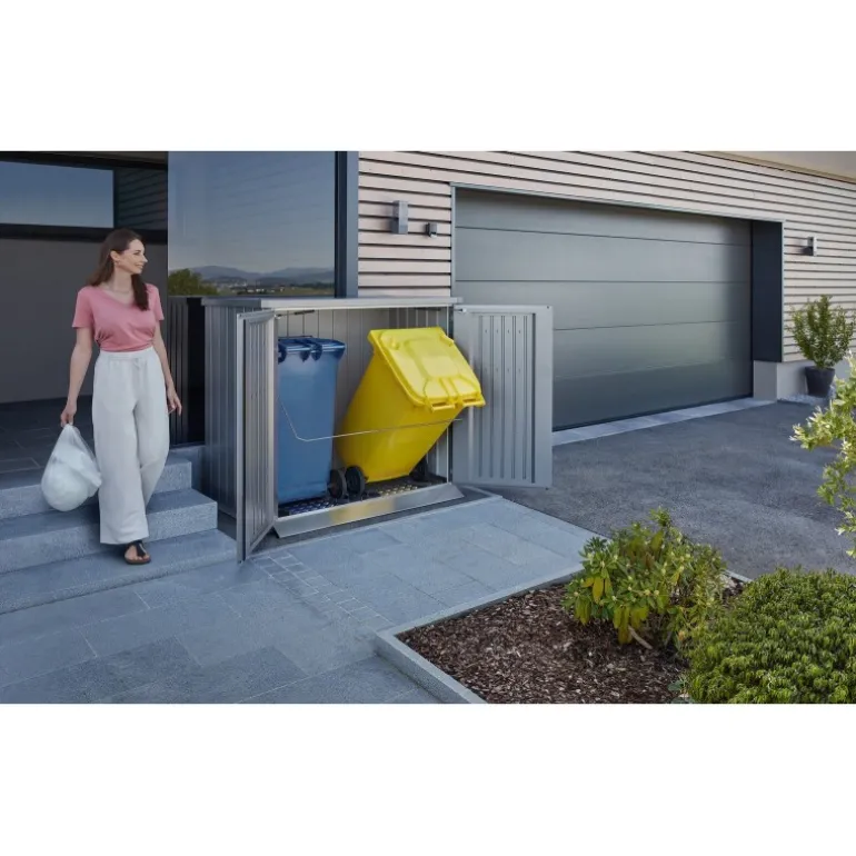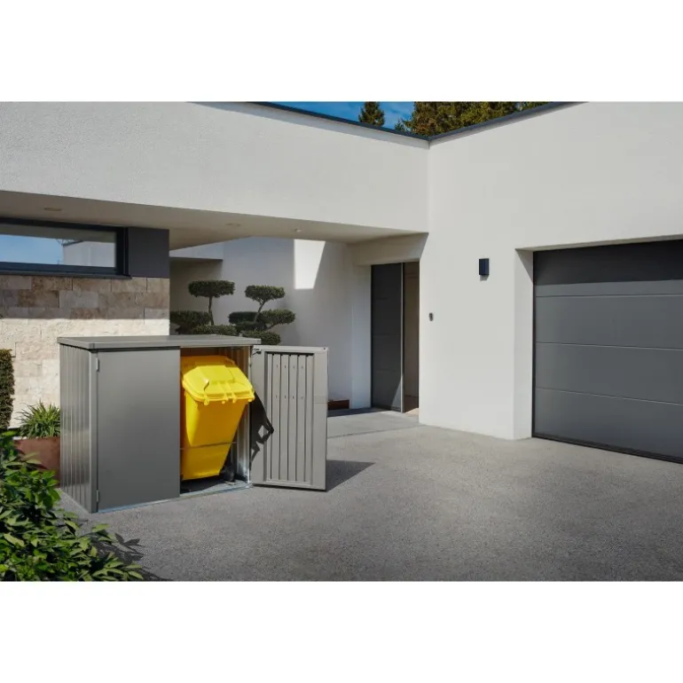 Niente rovina l’immagine di un giardino perfettamente curato più dei bidoni della spazzatura visibili. Grazie a Biohort, ora possono essere nascosti dietro una facciata moderna e liscia. Con il nuovo Alex® Duo, il sistema di separazione è organizzato in modo ottimale, l’ordine è garantito e l’aspetto complessivo del giardino è gradevole.