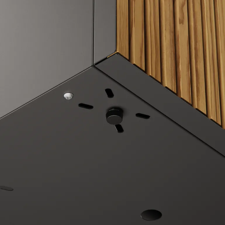 La collezione Herstera Deco Planter presenta fioriere di varie altezze e profondità che possono essere collegate insieme. Dal design pulito e lineare, questa collezione si adatta perfettamente a qualsiasi spazio e ambiente. La combinazione di acciaio nero e legno massello di pino termotrattato aggiunge calore e distinzione. Quando le fioriere sono collegate, la struttura non ha pareti interne, favorendo la crescita naturale delle radici. Inoltre, un’ampia gamma di accessori compatibili consente la personalizzazione per soddisfare le esigenze specifiche di ogni progetto. Le fioriere sono dotate di una base dotata di fori di drenaggio per evitare ristagni d’acqua e promuovere la salute delle piante. I piedini regolabili inclusi in ogni fioriera permettono di livellarla su terreni irregolari, garantendo stabilità e corretto drenaggio. Il pannello in legno è installato magneticamente sulla fioriera e può essere rimosso frontalmente utilizzando l’attrezzo in dotazione senza dover smontare la fioriera.