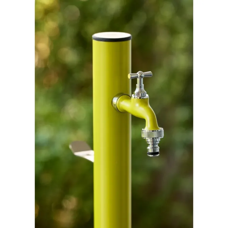 Colonnina idrica in acciaio verniciato tonda da interrare, completa di rubinetto in tinta e sella portatubo in acciaio inox. Accessori di fissaggio esclusi. Disponibile in 5 colori.