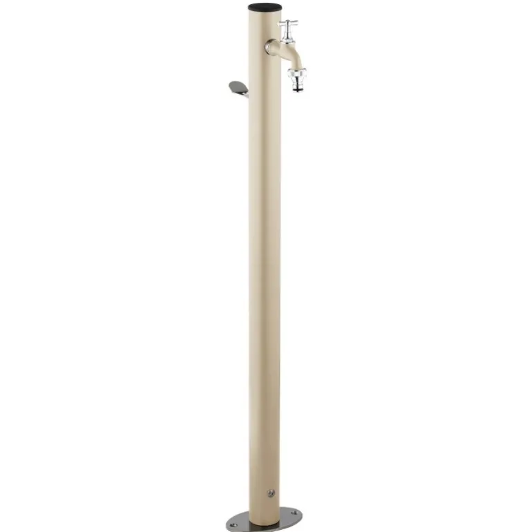 Colonnina idrica tonda in acciaio verniciato da posare in superficie. Completa di rubinetto in ottone cromato e verniciato, sella portatubo e basamento di fissaggio in acciaio inox. Viteria inclusa, accessori di fissaggio esclusi. Disponibile in 5 colori.