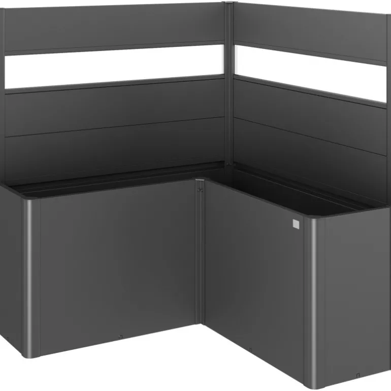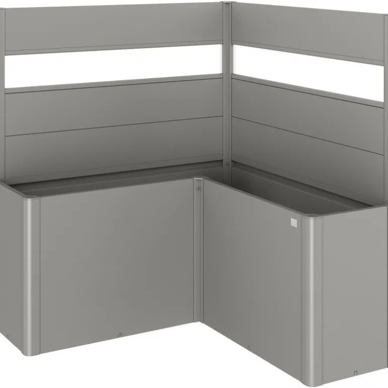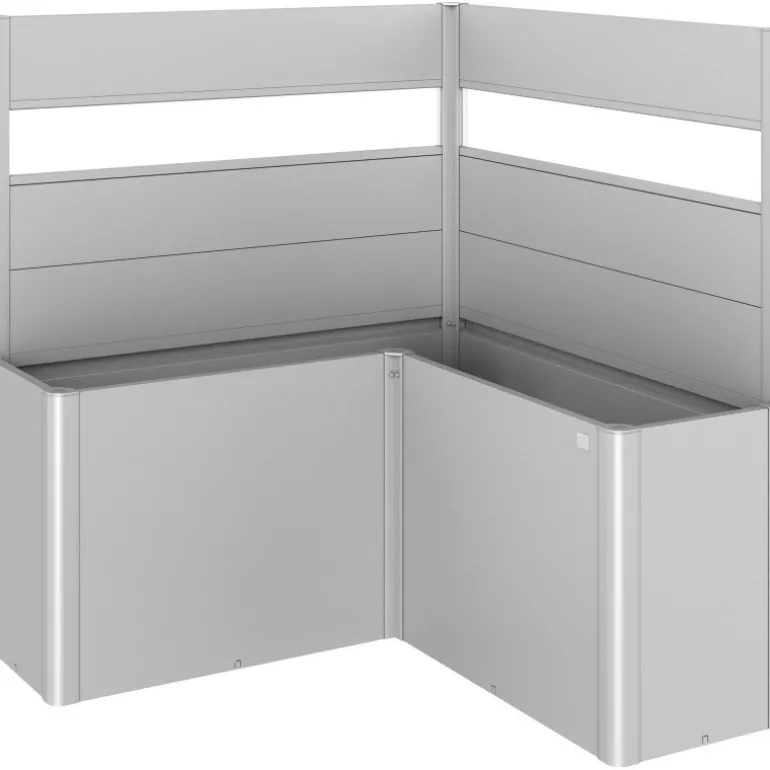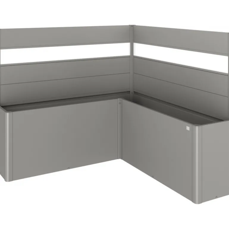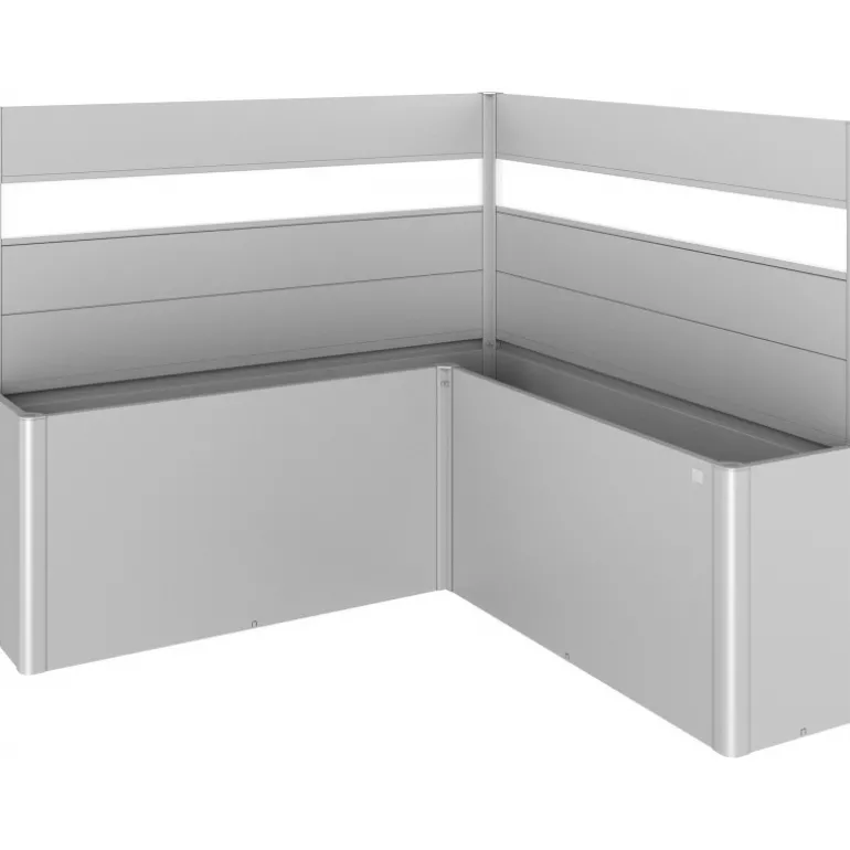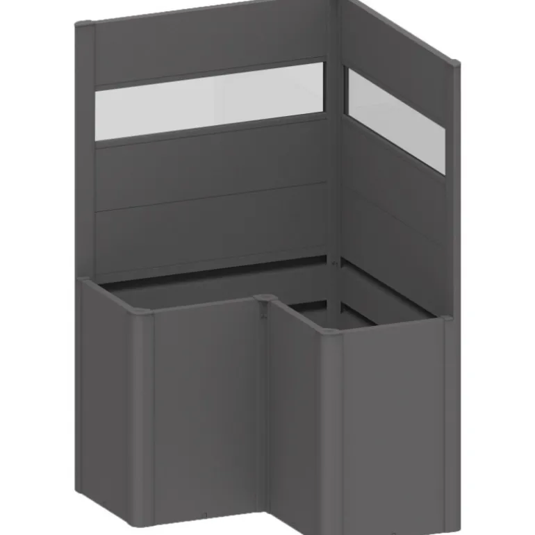Frangivista con elemento vetro in acrilico per fioriera Belvedere. Il frangivista crea una delimitazione decorativa e non solo si fa apprezzare per l’estetica, ma serve anche come protezione dal vento. Non può essere combinato con il sopralzo o la protezione contro le lumache.