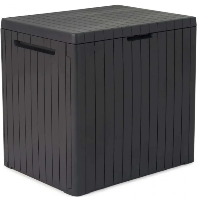 Il contenitore da giardino City della Keter ha un aspetto attraente che imita il legno, ma è realizzato in plastica durevole, resistente alle intemperie e che richiede poca manutenzione.
