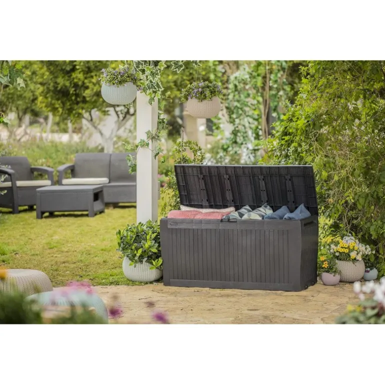 Keter Set 2 Divani + 2 Tavolini Contenitori CLAIRE DOUBLE SOFA STORAGE TABLE Grafite