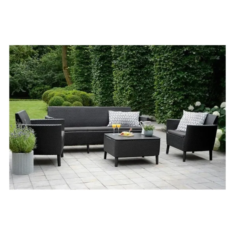 Design di ispirazione scandinava, trama in Rattan e cuscini per seduta compresi.
