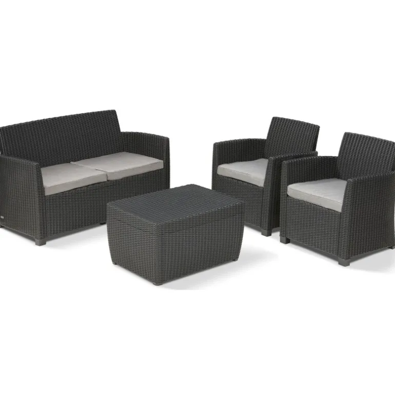 Set da Esterno Composto da: 1 Divano a due Posti, 2 Poltrone ed 1 Tavolino contenitore.