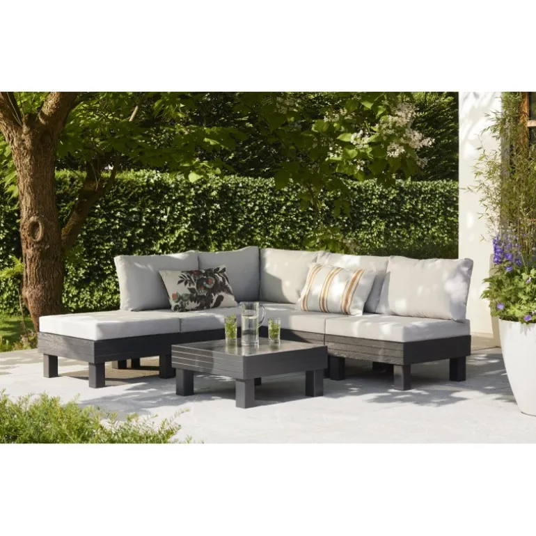 Set modulare, puoi configurarlo secondo le tue necessità, texture effetto legno. cuscini sfoderabili extra spessi (9 cm) compresi.