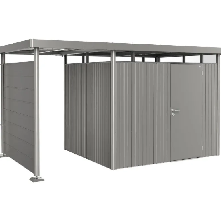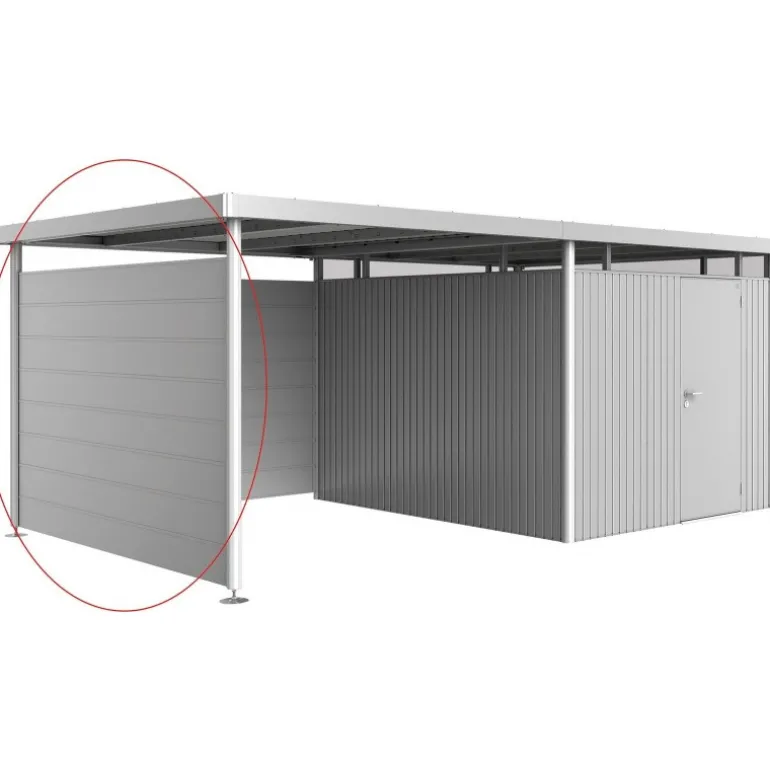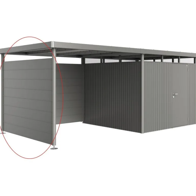 Facoltativamente, si può decidere di aggiungere una parete posteriore e/o una parete laterale alla tettoia laterale della casetta porta attrezzi HighLine (a partire dalla mis. H2). Le pareti sono disponibili negli stessi colori delle casette.