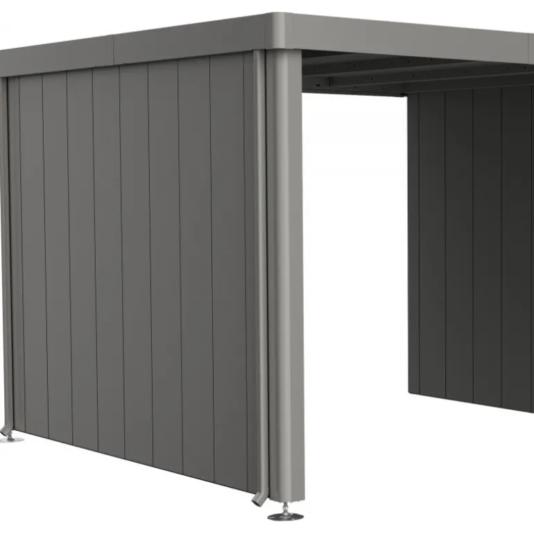 Se lo desideri, puoi installare una parete laterale sulla tettoia laterale della casetta Neo. È disponibile nello stesso colore della casetta.